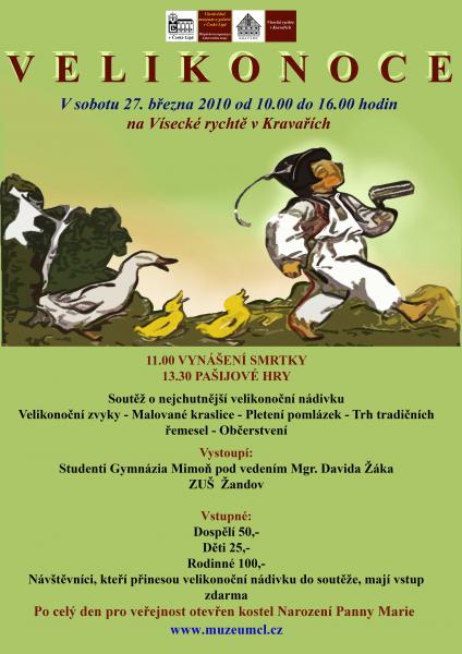 Návštěvníci se mohou těšit na vynášení smrtky a další velikonoční zvyky, představení pašijových her v podání studentů Gymnázia v Mimoni, malované kraslice, pletení pomlázek, perníkářku, včelaře, a další řemeslníky. O občerstvení se postará řeznický mistr Pavel Staněk z České Lípy.