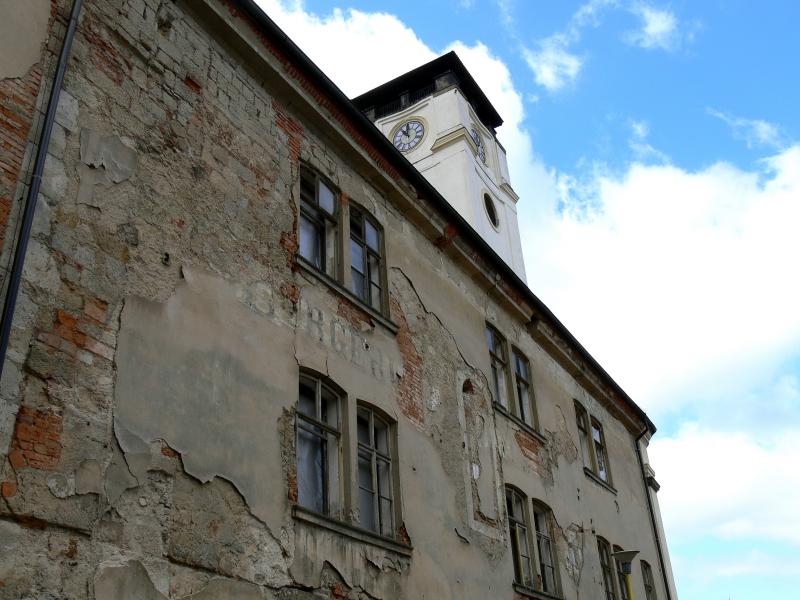 Původně to byl kostel Panny Marie, po požárech se z něj, hlavně díky dobrým sklepům a dostavbě pater, stal pivovar, který fungoval až do roku 1932, pak v něm krátce sídlila část tříd místní školy. Budova však opět spěla k tomu stát se ruinou, dnes slouží alespoň věž jako rozhledna. Zvláštní osud stavby a hlavně velmi zvláštní způsoby jak měnit účel. Působí to na nás trochu zmateně. Vracíme se kousek zpět a procházíme malými uličkami podél roubenek, což působí jako z pohádky. Ticho a klid nás lehce šimrá na těle, pomalá chůze nás nese cestou pod chrámem k další továrně. Ta je v těsném sousedství s klášterem.