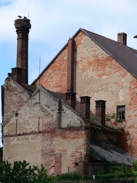 Mechanická tkalcovna a bělírna Daniela Bitterlicha je opravdu rozložitá. Její budovy nesou stopy dnešního využití, působí na nás vskutku nedobytně, tak alespoň pořídíme pár fotografií. Vracíme se zpět a proplétáme se uličkami, po dlažebních kostkách se ani spěchat nedá, jako by tu čas na chvíli usnul. Místní vlídný obyvatel na sebe upozorní mňouknutím, nechá se pohladit a my zase jdeme o továrnu dál. Míříme k dalšímu komínu, a že jich tady na nás čeká opravdu požehnaně. Na jednom z nich se dokonce zabydlela i čapí rodinka.