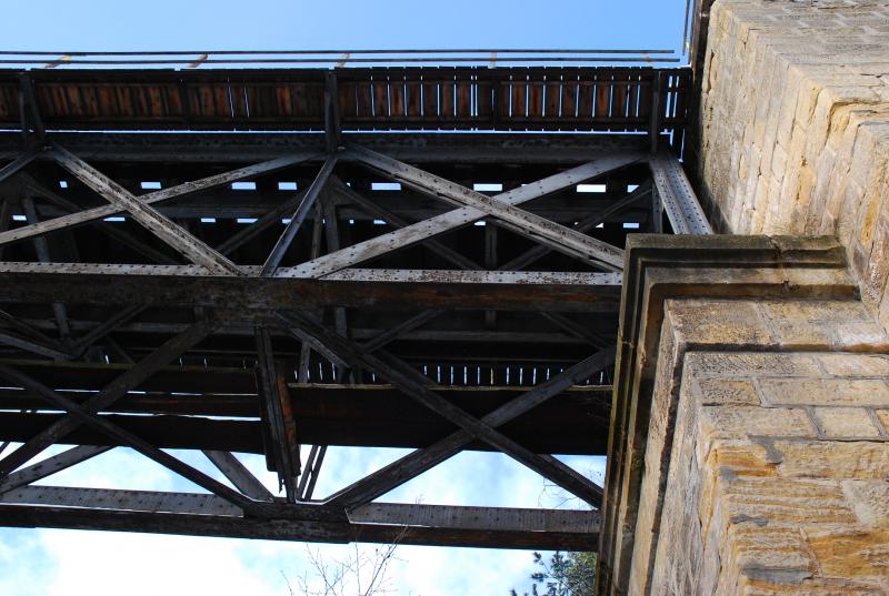 Projekt viaduktů navrhl harbě Kinský a vlastivědný spolek, aby ochránili peklo. V roce 1898 byla trať, vedoucí po dvou, za sebou jdoucích mostech, otevřena. První z mostů je přes Robečský potok a má tři klenutá pole v délce 190m. Druhý je veden přes Helenino údolí a má dvě kamenná pole a délku 95 m. Mosty jsou v provozu v původním stavu.