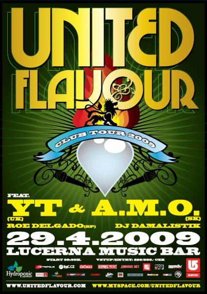 Jak už u této kapely bývá dobrým zvykem, i letos si pro nás připravili velký arzenál hostů. Z Velké Británie již přiletěl zpívající maestro tamní reggae scény YT, který je pro českou veřejnost zatím nepříliš známé jméno, ale na ostrovech patří k nejautentičtějším hvězdám v dancehallu a jeho hity „England Story“ nebo „Wicked Act“ se hrají po celém světě. Ze Slovenska dorazí dvě třetiny A.M.O., kteří u našich sousedů působí jako uznávaní pionýři reggae-hiphopu a jeden ze členů kapely Opak je spoluautorem prvního slovenského hiphopového muzikálu. Neodbíhejme ale od pražské Lucerny, kde vedle United Flavour vystoupí se svým soundsystémovým setem i hvězda španělské reggae scény Roe Delgado. V neposlední řadě je třeba také zmínit jméno Damalistik, což je milovníkům reggae jistě známý pseudonym francouzského selektora, který nyní působí hlavně v Praze. Tímto jsme vyjmenovali čtyři jména, která v Lucerně zaručeně uvidíte, ale je třeba počítat s tím, že se dočkáme i dalších překvapení.