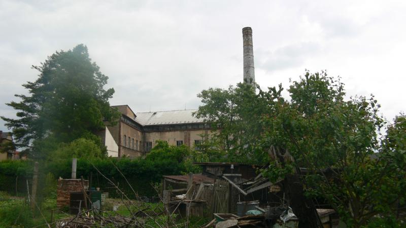 Pokračuji dále podél malebného potůčku, obdivuji hráz a cestou míjím ohrady plné ovcí a koz. Atmosféra je prosáklá ponurou industrielní romantikou. Konečně se nacházím opět na hlavní silnici, odkud se vydávám k bývalému měšťanskému pivovaru. Dávno tomu, co se tady vařilo pivo, od roku 1968 slouží prostory jako skladiště. Pompézní areál zastiňuje autobazar, jež hlídají velcí zlí psi. Mám psy ráda, ale tyhle mordy opravdu nahánějí strach, proplížím se kolem, abych vyfotila objekt i zezadu. Zde se mi naskytne výhled na rozkošné zákoutí s nádrží, ač ostnaté dráty a nemilí hlídačové ve mně vyvolávají tíseň.