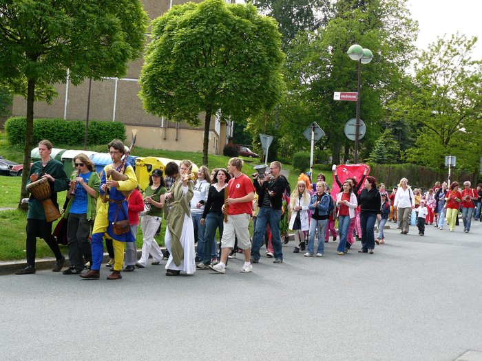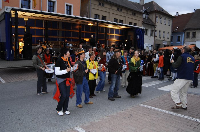 K divokému rytmu bubnů se postupně začali přidávat i ostatní hudebníci a společně pak vytvořili průvod, který se vrátil zpět na náměstí, kde celodenní program vyvrcholil opětovným vystoupením všech účastníků. Následovala fireshow, která jistě všechny potěšila.