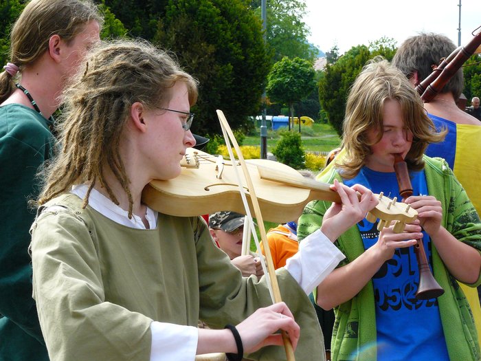Zde, po dopoledním zahajovacím průvodu z náměstí, zazněla hudba různých žánrů. Umělci předvedli typickou českou lidovku, irské balady, jazz, francouský folklor a mnoho jiných. Vystoupili také středověcí minesengři, dudáci, bubenící a jiní kumštýři.